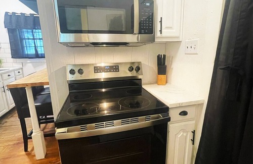 This is an old home, but it has been fully remodeled and includes all the modern amenities. The home consists of two bedrooms, living and dining room, bathroom and full kitchen with all the basic dinnerware, pots and pans.