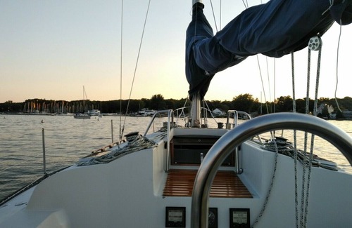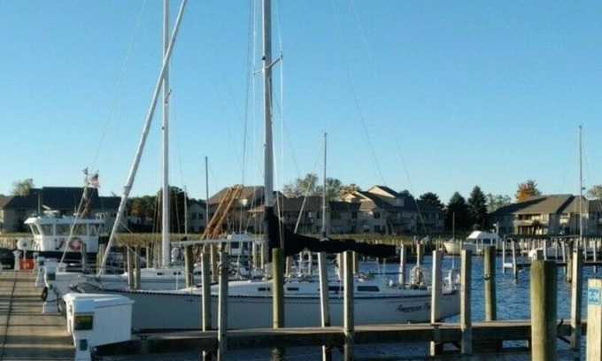 Enjoy a stay on 2-bedroom sailboat next to popular restaurants and beaches on Lk MI and Muskegon Lk.