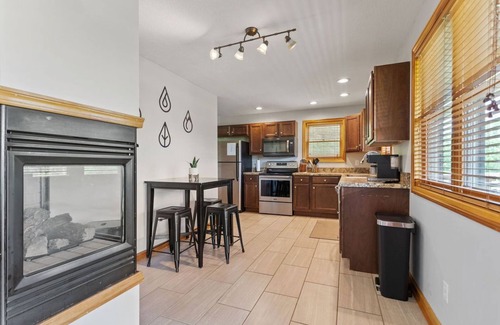 Both cabins come fully equipped for comfort and convenience, featuring three bedrooms, two bathrooms, and a pull-out couch in the Gathering Cabin to accommodate everyone in your party. Enjoy quality time together in the game room of the Arcade Cabin or host a cozy movie night in the Gathering Cabin's spacious lower-level lounge. Outdoor amenities include a hot tub perfect for relaxation, a fire pit for evening gatherings, and a stocked pond for fishing (please note, swimming is not permitted). The well-appointed kitchens make meal preparation a breeze, while the outdoor grilling area and picnic tables invite delightful alfresco dining experiences.