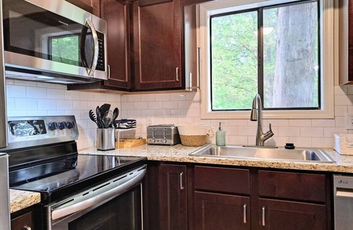 - Modern Amenities: Enjoy newly renovated interiors with two fully stocked kitchens, flat-screen Roku TVs, and convenient in-unit laundry facilities, ensuring all your needs are met during your stay.