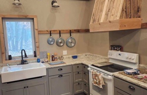 Get comfortable in this cozy two-bedroom cabin with a loft that perfectly balances rustic charm and modern convenience. Two Crows Cabin features a master bedroom with a king bed and a second bedroom with a queen bed. Climb the ladder up to the loft area where you'll find two additional twin beds and hanging hammock loungers, perfect for relaxing or enjoying a good book. The fully stocked kitchen is equipped with a coffee maker, toaster, blender, and all the essential cooking basics, making it easy to prepare your favorite meals. Relax in the inviting living area or step outside to enjoy the tranquil surroundings. Whether you're savoring a morning coffee on the front porch or unwinding by the fireplace, every corner of this cabin is designed for your comfort and relaxation. Experience the ultimate hidden getaway at Two Crows Cabin, where comfort and natural beauty come together to create an unforgettable retreat.