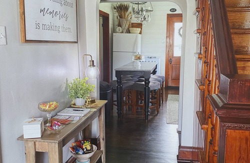 A totally rehabbed 1900 home. Two Hearts Rambling Rose is located right in the middle of the charming downtown Historic District; a very short walk to Amtrak, restaurants, bars, Tin Mill Brewery, Hermannhof Winery, coffee shops, shopping and more. Step right outside the door for trolley service.