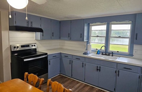 Home 1: (The Cottage) This 2Br 1Ba property has been very popular on the STR market for quite some time. It has a beach, boat launch, private dock, and plenty of green space for bocce ball, a game of football, or corn hole. The home overlooks a beautiful point which gives you big water views but also sits on a cove allowing for relaxation with minimal boat disruption (waves). The depth at the dock is over 7 feet at full pool and the inside of the home of comfortable, cozy, and ready for your family to enjoy!