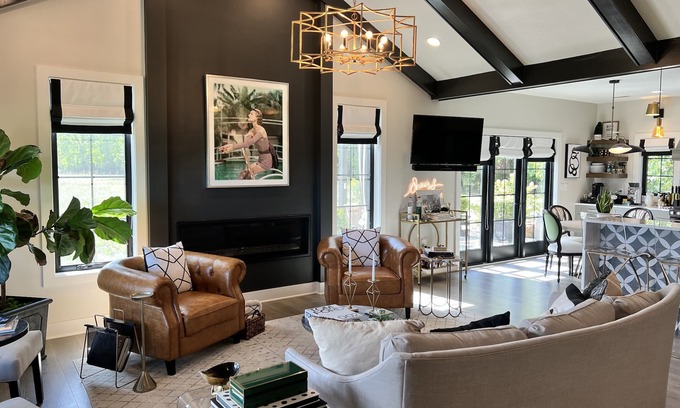 Well-furnished private country retreat with main house and guest house. Enjoy the peaceful privacy, within a 30-minute drive of Columbia, MO. Perfect for a group of friends, or a family retreat. Plenty of space for everyone to have their own privacy. Relax on the screened-in porch, or enjoy the sunset from the fire pit! Main house is decorated tasteful farmhouse. Guest house is decorated contemporary glam. This listing/rental is for both houses.