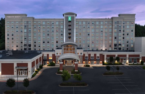 1 King Bed512 sq feet Layout - Living room and sitting areaInternet - Free WiFi and wired internet accessEntertainment - 37-inch LCD TV, premium channels, and MP3 dockFood & Drink - Refrigerator, microwave, coffee/tea maker, and room service (limited hours)Sleep - Premium bedding, blackout drapes/curtains, and bed sheets Bathroom - Private bathroom, shower/tub combination, free toiletries, and a hair dryerPractical - Free local calls, queen sofa bed, and safe; free cribs/infant beds available on requestComfort - Daily housekeeping and climate-controlled heating and air conditioningAccessibility - Closed-captioned TVNon-SmokingConnecting/adjoining rooms can be requested, subject to availability When you stay at Embassy Suites by Hilton Birmingham Hoover in Birmingham, you'll be in the business district, within a 15-minute drive of The Summit and Birmingham Zoo. This hotel is 11.2 mi (18.1 km) from University of Alabama-Birmingham and 11.5 mi (18.5 km) from University of Alabama Hospital.