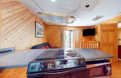 Close to lots of outdoor activities, this quiet two-level house is a terrific space to call home during your next trip to Gatlinburg. You'll love the all-wood interior, creature comforts, and the upper primary level with a spacious balcony just off the living area. When you're not out on a new hiking adventure, kick back on the comfy futon to watch a good ballgame or show on the TV. The full kitchen features all the appliances, counter space, and cabinet storage you'll need during your stay, and you can enjoy your meals from the breakfast barstools or alfresco outside on the balcony.