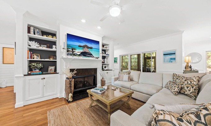 Nestled in a tranquil neighborhood, this home offers a unique blend of privacy and accessibility, being just a half mile from the first of eight beautiful beach access points on the private island. Whether you are a family, or two families, friends, golf buddies, or attending an island wedding, this house is adored by all who stay!