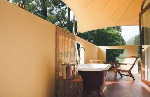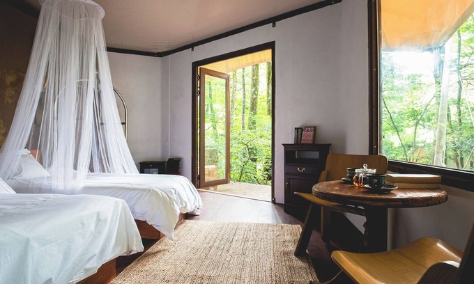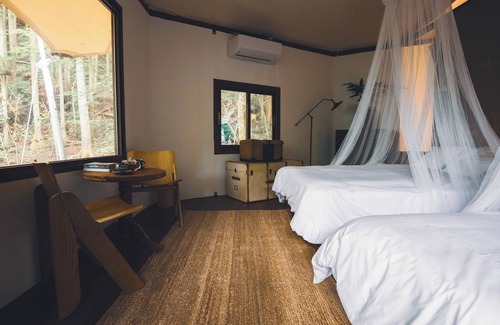In a room that combines Japanese and Western furnishings you can enjoy glamping that can only be experienced here