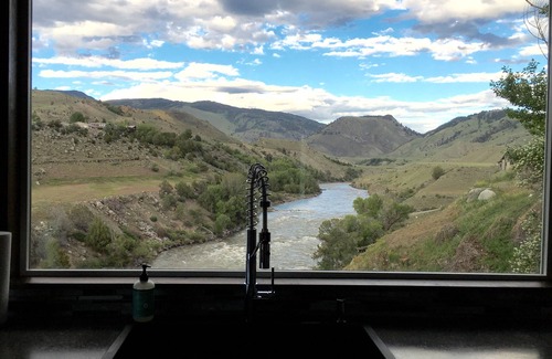 This home comes fully furnished. There are 2 Bedrooms, one with 2 full size beds and one with a king size bed. Each room has a luggage rack and a closet. There is a queen size sleeper sofa and full size sleeper couch in the Living Room. The bathroom has a double vanity and a walk in 8ft shower with a Rainshower Head and wand and all linens are provided. The kitchen has a 3 stools at the counter bar, microwave, mixing bowls, coffee maker (coffee included), toaster, knife block, crock pot, pots, pans, wine key and eating/cooking utensils with a view of Yellowstone. The deck overlooks the river below, our bridge and town to your left, the Absaroka Beartooth Mountains as far you can see and Yellowstone Park on your right. In the Summer and Fall, there is an outdoor couch and coffee table on the deck to enjoy a morning coffee, evening cocktail or Family BBQ.