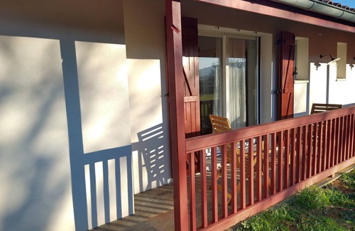 This classified studio** (19m2) with equipped kitchen (induction hob, combined oven/microwave, refrigerator with drawer freezer, toaster, kettle, Senseo coffee maker, vacuum cleaner) and bathroom (90x100 shower, sink , toilet, standing magnifying mirror, hairdryer) with comfortable sleeping arrangements (with a 160x200 bed, 2 duvets, 2 pillows per person), private entrance, heating/air conditioning, mosquito net and double glazing, wifi, television, with a superb view of the countryside and the Pyrenees, all from your 10 m2 covered terrace with table and 2 comfortable armchairs. Motorcycle/bike garage