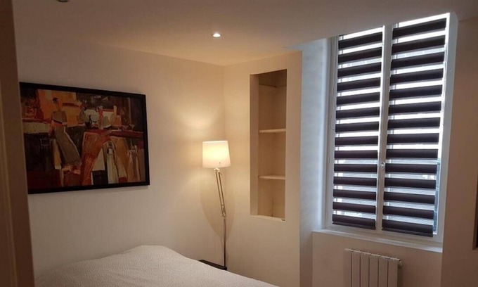Small apartment with one bedroom in the center of Mansle (15 min Angoulême). On the ground floor of a one-way street in the city center, close to the Town Hall, close to all shops.