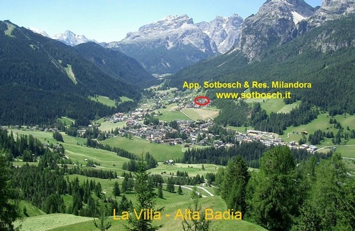 Comfortable apartment for 2 people in traditional style, in one of the most beautiful points of the inhabited area of La Villa, composed of: living room, kitchenette, one bedroom, 1 bathroom, balcony with panoramic view. Quiet and sunny area with wide views over Piz La Ila, Sasso Croce and Gruppo del Sella. Close to the ski slopes of Alta Badia - Sella Ronda Ski Carousel. Private parking.