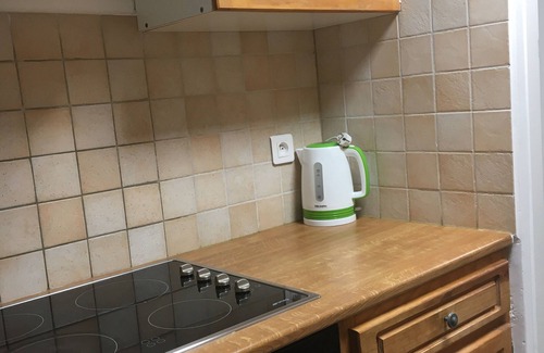 -Fitted kitchen: Refrigerator, dishwasher, 4-burner stove, microwave, kettle, raclette / crepe maker, Nespresso coffee machine