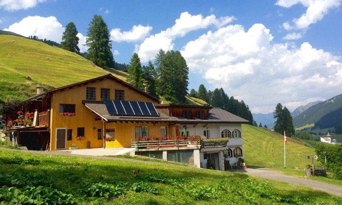 A little paradise awaits you here, especially for children. There are ducks, rabbits, chickens and cats. A loom is still in operation and hats are being felted. Farmers breakfast with farm products. In summer a wonderful hiking area with free use of all mountain railways in the Davos area. Great ski area in winter.