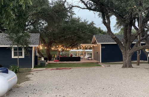 Two fully furnished houses just feet apart make this the perfect destination for extended families at Lake Brownwood. The houses have been beautifully restored over the last 2 years and are like new. Main house has 3 bedrooms (two rooms with queen beds and a room with two twin beds), 1 bath, full kitchen, dining area and large living room. Guest house has two bedrooms and a bunk room (queen bed in each bedroom and two bunk beds in the bunk space), 1 bath, full kitchen, dining space and large living area. A deck in between the two houses provides tons of outdoor living space. Outdoor kitchen and bar with outdoor living space and TV. The property has a private boat ramp and tons of parking. The yard slopes gently down to the dock so there is no worry of anyone falling down a steep cliff or having to climb a long staircase to get back from the water. The dock has a large pontoon boat slip / lift and another large boat slip / lift with 2 attached jet ski docks. Over 200 feet of lake front means plenty of fishing, kayaking or other activities. An automatic fish feeder provides a fun show of fish every evening. There are 4 RV hook ups available for an additional fee. (50 amp with water)The dock is in a protected cove so you can enjoy the water without strong winds or waves.