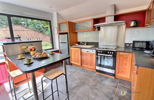 Your vacation rental includes on the ground floor: living room, living room with wood stove, veranda kitchen overlooking the garden which creates a relaxing space, accessible by 4 steps, a laundry room, separate WC, a bedroom with 1 bed 140x190 and walk-in closet. Upstairs: 2 bedrooms with 1 160x200 bed and 1 90x190 bed, bathroom with shower, office or baby room. Beautiful unenclosed private outdoor space with a 30 m² terrace, a 400 m² lawn area and a 100 m² courtyard that can accommodate 3 cars. Detached house in the countryside, located 5 km from the center of Louargat with its shops, organic bakery 3 km away. Belle-Isle-en-terre located 5 km from your rental, is a remarkable natural heritage with its forest, ideal for hikers, mountain bikers and horse riders, its rivers for fishermen and kayakers, If you like the sea and the beaches , you will be between 25 to 40 minutes from the beautiful beaches of the bay of Morlaix on the pink granite coast or Goëlo, the impressive beach of St Efflam 30 km away, is one of the largest beaches in the department, it benefits a very well equipped nautical centre. It is also of course a pleasant place for swimming at high tide. At 25km, you can also discover the valley of the saints in Carnoet and its hundred monumental granite statues as well as the corong gorges in Locarn, an immense heap of legendary rocks. .