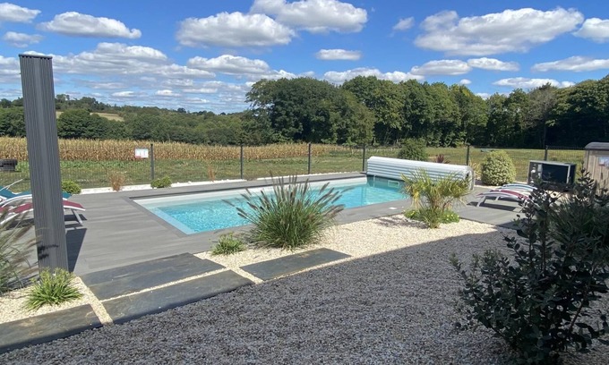 Ty Feurn - PEAULE - Gîte is located in Peaule. Ty Feurn - PEAULE - Gîte provides accommodation, featuring Pool, TV, Balcony/Terrace, among other amenities. This House features Pool, TV, Balcony/Terrace, to make your stay a comfortable one.