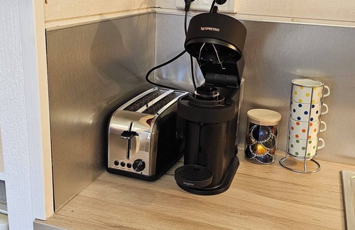 🍽 The open kitchen is well-equipped and includes a starter kit with tea and coffee to help you start your stay right.