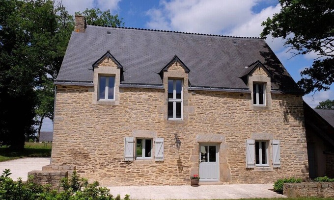 - Stone cottage in peaceful location, private covered pool near Josselin.