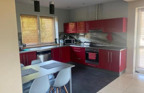 Providing a garden, Tymi3 Dom na wzgórzu przy stoku features accommodations in Przemyśl. This property offers access to a balcony, free private parking, and free Wifi. Outdoor seating is also available at the villa. Featuring a terrace and garden views, the spacious villa includes 5 bedrooms, a living room, flat-screen TV, an equipped kitchen, and 2 bathrooms with a bath. Towels and bed linen are available in the villa. For added privacy, the accommodation features a private entrance. During the colder months, guests can enjoy winter sports in the surrounding area. Orsetti House Museum is 22 miles from Tymi3 Dom na wzgórzu przy stoku. Rzeszów-Jasionka Airport is 57 miles from the property.
