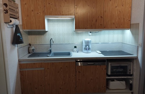 The apartment is furnished and decorated, in the living room 2 folding benches allow the sleeping of 4 people and in the room a large bed with cupboard.