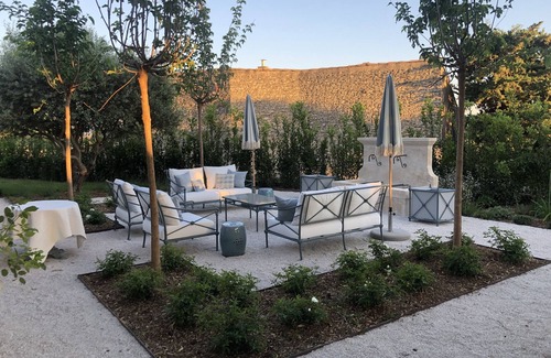 The house is set in 2100m2 closed garden which has been divided into the terraced garden where one can dine with 8, the cozy lounge garden opposite the limestone fountain is great for enjoying the aperitif and then there is also the swimming pool garden with comfortable daybeds bordered by old olive trees and its dining terrace for 6/8 pers with BBQ-plancha.