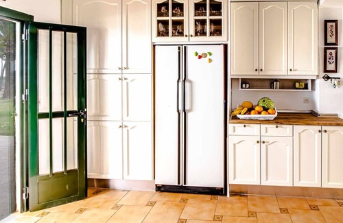 Kitchen with 4 rings vitroceramic hob, oven, microwave, cap coffee maker, toaster, fridges, disherwasher,… and pantry.
