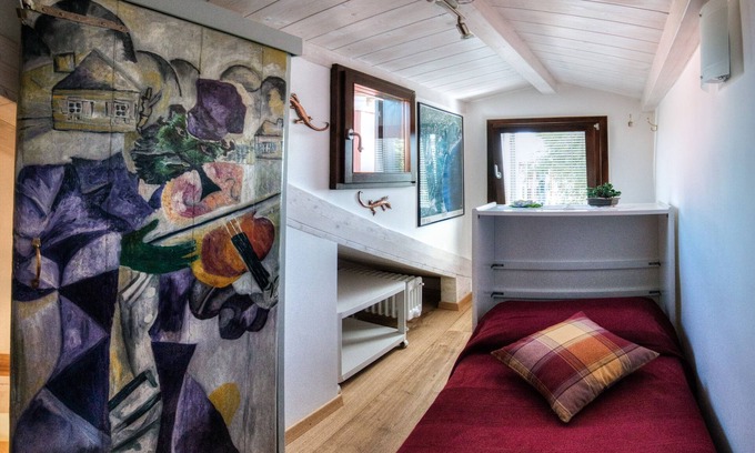 On the second floor which is accessed by a particular staircase, you will find a small panoramic attic with a single bed.