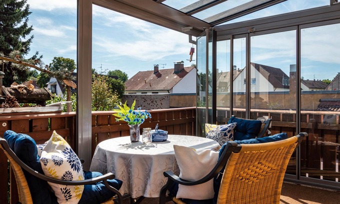 You will enjoy a cozy and relaxing atmosphere in Franconian style – rustic, clean, and full of light. The central location offers quick access to the city center, the harbor, and the trade fair. Public transport is easily accessible.