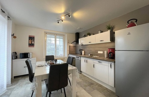 Beautiful gite completely renovated in 2017, located on the ground floor of the owners' house. Equipped kitchen (fridge-freezer, microwave, ceramic hob), living room/lounge area, 1 bedroom (1 double bed). Shower room, WC. Washing machine in annex. Gas central heating included Sheets and towels provided, bed made on arrival, WIFI connection. Shared open ground, terrace in the open courtyard, private parking, garden furniture, plancha. D88 nearby.