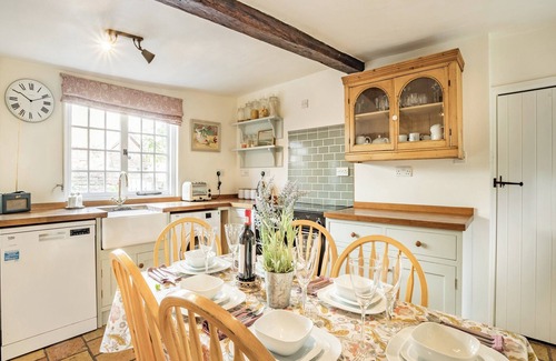 Bathroom: Bath With Shower Over, Toilet. Oil central heating, electricity, bed linen, towels and Wi-Fi included. Initial fuel for wood burner included. Travel cot, highchair and stairgate. Welcome pack. Courtyard garden with sitting-out area and garden furniture (shared with other properties on-site). Bike store. On-road parking. No smoking. . Tucked away in the heart of the traditional historic town of Kimbolton, this Grade II, 13th-century stylish cottage combines contemporary living with a vintage eclectic feel.