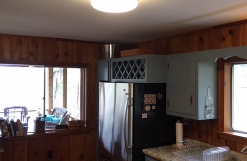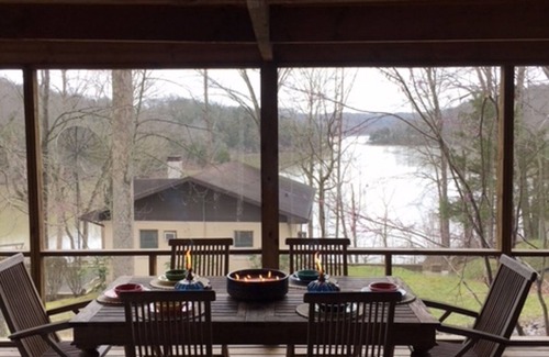 Our Cabin is a 2 bedroom, 1 bath with a large screened in porch with a beautiful year round view of the lake. The cabin has an expansive deck and screened in porch which has always been ours and our guests favorite spots to enjoy the sunrise over the water with morning coffee to ending the day with a great meal with family and friends. We offer a stainless steel outdoor grill, large teak table and chairs for 8, nice teak day bed with the best mattress and several cozy wicker cushioned chair options. A great hammock under the trees for an afternoon of reading or taking a nap. Inside you have a nicely furnished kitchen with all the necessities to make a great meal; large refrigerator, 4 burner stove, oven, microwave, regular coffee pot and Keurig , pots & pans hanging rack and a solid maple chopping block. The living room has a working wood burning fireplace, leather coach & chairs, pull out queen size sofa bed, a twin size sofa bed, 48” SMART TV and DVD player to watch your favorite movies. Wifi is available for all your streaming needs. Master bedroom has a queen size bed with high loft down comforter and a stackable washer/dryer in the closet area and the other bedroom has 2 twin beds. Two couch pull outs add additional sleeping arrangements with another queen and twin sleeper sofas. One bath newly renovated with single bowl sink and 48" shower. All bed linens, bath and kitchen towels furnished.