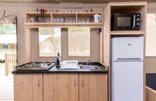 This charming glamping site offers an immersive experience, blending the beauty of the Ardennes with the luxury of modern amenities. Nestled at 500 meters above sea level, the property provides guests with breathtaking views over rolling hills, vast fields, and dense forests. It’s an ideal choice for those seeking a peaceful retreat without sacrificing comfort, making it a perfect destination for families, friends, or couples. The area surrounding the campsite is a nature lover’s paradise, offering an array of outdoor activities to suit all preferences. Guests can embark on scenic hikes, explore local cycling trails, or enjoy nature walks through the serene forests. The site’s vast open spaces also allow for outdoor games, making it a fantastic spot for family gatherings. The tranquil environment is perfect for relaxation, while the nearby valleys and forests invite further exploration and outdoor adventures. Whether you’re seeking action-packed activities or quiet moments in nature, there’s something for everyone. The glamping tent itself is designed for comfort and convenience, with a spacious layout that includes two cozy bedrooms and a private shower room. The well-equipped kitchenette features a fridge, microwave, coffee machine, and electric cooker, ensuring a comfortable stay. A pellet stove provides warmth during cooler nights, and the living area includes a sitting area and dining table for family meals. Guests can also enjoy outdoor dining with a picnic table and relax in the garden area. Additional amenities include Wi-Fi, free parking for one car, and a pet-friendly policy, making it the perfect retreat for all.