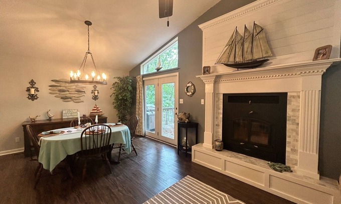 Down the mountain and through the woods you will go to experience the ultimate lakeside retreat at the charming Kings Place Cottage! Tucked away on a gently sloping lot at the base of Pryor Mountain, near point seven and The Narrows in quiet Salt Creek Cove, the cottage provides a peaceful escape with plenty of space for your family and friends. Enjoy the beautifully appointed primary suite with a king bed, and let the kids have a blast in the bunk room that sleeps five. Take advantage of the cottage's prime location mid lake and explore both the Heber Springs and Fairfield Bay end of beautiful Greers Ferry Lake or simply relax and soak in the peaceful views of the lake and woods.
