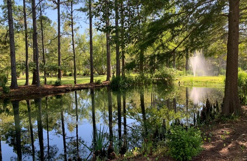 Oh-- Its on the north side of Wolf Bay, in a protected area we call Hammock Bay! We have a boat available for you to rent if you like, we also have kayaks, canoes, and bicycles that are available for your use anytime. AND we have side by side UTVs available for rent to ride the trails of our 39 acre estate.