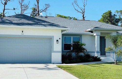Escape to this enchanting retreat that is ideally situated near golf courses, beaches, and restaurants. Indulge in a serene and peaceful stay at this luxurious home, built in 2020. Featuring a spacious outdoor lanai with a private pool (optional heating available at a cost) and a stunning garden, this haven is an excellent choice for the whole family. With 3 bedrooms, 2 full bathrooms, an open-concept kitchen/dining/living room, and accommodation for up to 5 guests, there is ample space for everyone to unwind and rejuvenate.