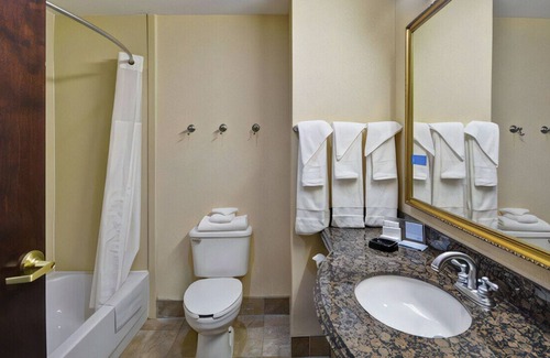 Enjoy a peaceful night's sleep on your fresh and clean bed in your cozy bedroom. Watch a movie on the 25-inch LCD TV with HD channels while curled up in the comfortable, easy chair with an ottoman. Luxurious towels are in the bathroom, and the shower has a curved rod for added space and light. The indoor pool, fitness center, and hot tub are just a few of the unique amenities that will make your stay more enjoyable. Miscellaneous fees may be subject to additional costs after booking.