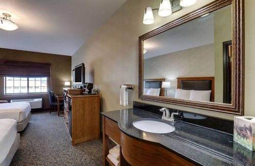 Welcome to our lodge-style hotel, blending rustic charm with modern comfort across 161 unique rooms. Enjoy amenities like our heated indoor/outdoor pool, fitness center, and complimentary hot breakfast. Relax at Palmer’s Pub for a local brew. Your memorable stay in the heart of the action awaits.