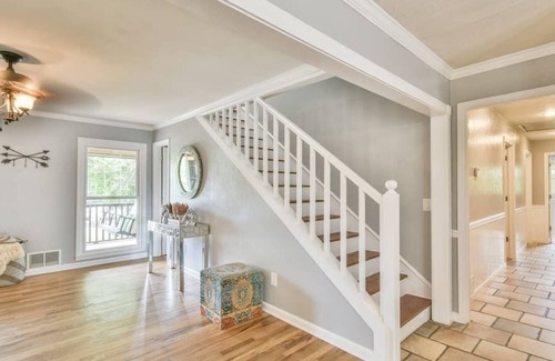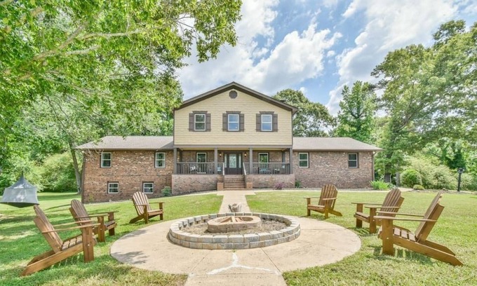 Welcome to Pebblebrook Stables located in the northern part of Georgia! Stay at this 15-acre horse farm with resort-worthy amenities and charming interiors. The home is located on the hill overlooking the fire pit area, swimming pool and the ten stall horse barn, training arena and pastures.