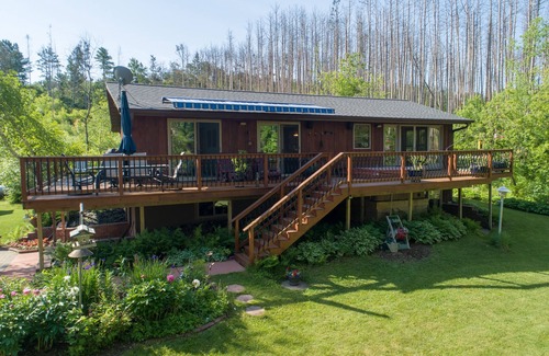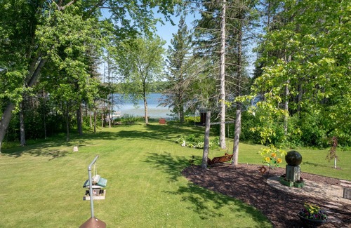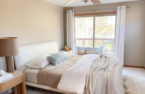 Star gazing while soaking in huge hot tub, swimming in Middle Pine lake and playing on the lawn all day are always favorites. All the beds are super comfy and living room has 3 walls of windows and a gas fireplace. The kitchen is all set for cooking up a storm and the large deck has a gas grill as well. Just a few miles from Star Prairie and New Richmond for fun outings. There are 2 kayaks ready to go as well as a public boat launch around the corner if you wish to bring a larger boat ( note that this is a no wake lake so sorry no water skiing). Enjoy movies at night on a large tv with room for the whole family on the couch. Lines and towels are all top notch. If nature and comfort are you thing.....come on over.