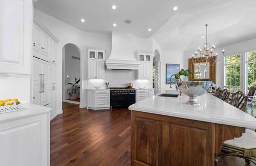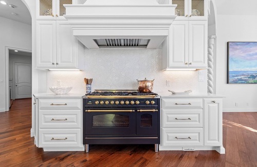 The gourmet main kitchen is a chef’s dream with high-end appliances, quartz countertops, and everything needed to entertain in style. A second, fully equipped kitchen in the lower level makes hosting effortless. With two spacious living areas—each styled with upscale décor and custom lighting—there's room for everyone to relax in comfort.