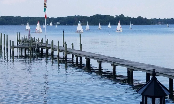 We have an open main floor with finished oak hardwood floors, gourmet kitchen with both Keurig coffee maker and regular drip coffee maker, separate laundry room with full size washer and dryer, custom built-ins in many rooms (lots of books), finished lower level with 65" Roku television. Bring your laptop and log into the internet (free WiFi) as you sit on the porch and enjoy the gentle breeze with your cool drink and watch the boats sail by. Fishing and crabbing from the middle to the end of our dock ... swimming for the kids in 2-3 feet of water (on a sandbar that goes about a third of the way out the length of the pier - at the end of the pier the depth is about 7-8 feet of water) and kayaking (2 kayaks - LL Bean Ocean Kayak Malibu Two Package and an LL Bean Single person kayak) on the river which is as wide as a lake and feeds into the Chesapeake Bay about a mile or two up. Community beach and activities ... several great seafood restaurants within 10-15 minutes.