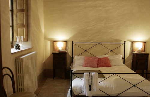 Charming and completely restored 13th century castle olive mill, transformed into a luxurious country house, located just outside the ring wall of Castello di Montegiove.