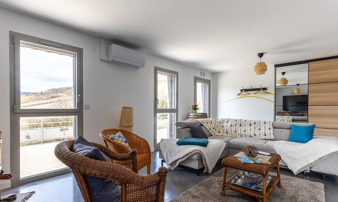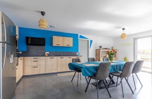 Located above the Domaine Boudes Plaisir winery, this cottage welcomes you to an exceptional setting in the heart of the charming wine-growing village of Boudes, in the Pays d'Issoire region. Designed to accommodate up to 8 people, it perfectly combines modern amenities, a friendly atmosphere, and an authentic winegrowing ambiance. From the moment you arrive, you'll be captivated by the bright and spacious spaces, the tasteful decor, and the high-end amenities. The kitchen is fully equipped, ideal for preparing delicious meals to share around the large family table. The comfortable living room invites you to relax with unobstructed views of the surrounding area. Outside, enjoy a spacious terrace overlooking the vineyards and the charming village: a true haven of peace for your sunset aperitifs. At the rear, a boules pitch promises convivial moments with family or friends. As a bonus, experience a total immersion in the world of winemaking and interact with the passionate winemakers who will show you around the superb winemaking cellar with its imposing amphorae and their barrel cellar (tastings can be arranged to discover the local wines upon request). The cottage comprises, on the same level: - a large living room with an open kitchen and living room opening onto the terrace - the "Gamay" bedroom and the "Syrah" bedroom, each with a queen-size bed - the "Pinot Noir" bedroom with two single beds that can be joined together thanks to an ingenious system - a large bathroom - a separate toilet - a laundry room - the "Chardonnay" bedroom with two single beds that can be joined together - a shower room/toilet Nearby attractions: the Vallée des Saints in Boudes (a true Auvergne Colorado), vineyards, ski resorts 35 minutes away, the Auvergne Animal Park (and its endangered species), as well as numerous hiking trails.