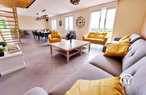 14 miles from Solesmes Abbey in Saulges, Un instant à Saulges, jusqu'à 12 personnes features accommodations with access to a sauna, hot tub, and wellness packages. The property is around 15 miles from Sable-Solesmes Golf Club, 23 miles from Laval-Changé Golf Course, and 28 miles from Anjou Golf Course. Guests can use a terrace. The vacation home also comes with a well-equipped kitchen with a dishwasher, a microwave, and a fridge, as well as a hair dryer. The accommodation is non-smoking. A children's playground is also available at the vacation home, while guests can also relax in the garden. Rennes–Saint-Jacques Airport is 71 miles from the property.