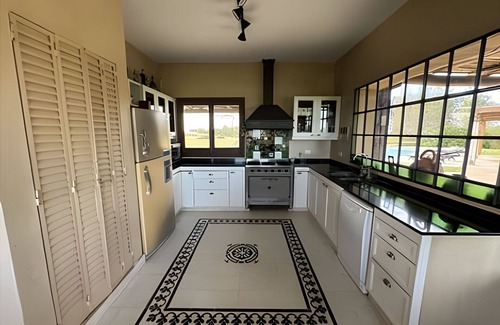 Get to know and enjoy this hidden Paradise! Beautiful country house on a 3-hectare plot of land, completely forested, in front of the Culú Culú lagoon. Its location is unbeatable! The house is divided by a beautiful split glass gallery with views of both its private lagoon and the Culú Culú lagoon, creating an oasis of peace that you will never want to leave. Each landscape visible from each of the windows is a perfect painting of nature. In the main wing of the house you will find: - A beautiful dining room, with glass walls and ceilings, allowing sunlight to flood the space. - A living room with a large window and a fireplace, reflecting the purity of the natural environment. The kitchen is fully equipped and spacious, offering maximum comfort for cooking. All public spaces are equipped with wood-burning salamanders. This wing has 3 bedrooms: - The master suite on the upper floor, with an en-suite bathroom that includes an antique bathtub, salamander, television with directv and private terrace. Each window offers a dazzling landscape. - On the ground floor, two bedrooms with two twin beds each and the option of adding two more beds, completing up to four twin beds in each room if necessary. - A full bathroom at the end of the hallway. Crossing the gallery, equipped with tables, chairs and armchairs, is the other wing that includes: - A warm living room with television with directv and salamander. - Three additional bedrooms: one en suite with a double bed, one with two twin beds and one on the upper floor with a double bed and private terrace. All bedrooms in the house have hot/cold AA. The house also has a grill, a clay oven and a barbecue in the middle of a small forest, next to a charming chicken coop. The infinity pool completes the landscape, making it even more perfect. In addition, we have kayaks to explore the private lagoon, foosball and ping pong table. *PET FRIENDLY (small pets)