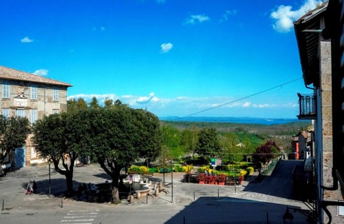 Siamo al centro del paese di Manziana (RM) davanti ai giardini, con vista lago di Bracciano e a pochi km da Roma e Viterbo ,raggiungibili in treno (stazione vicinissima a piedi)
