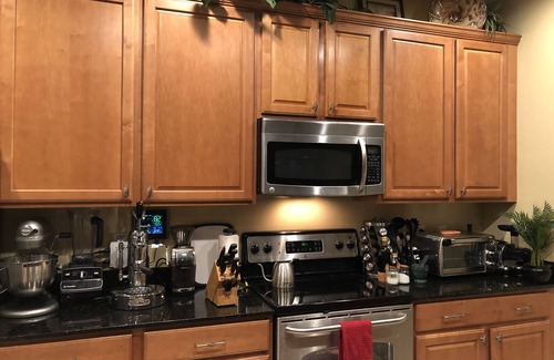 For the food aficionado, the chef's kitchen and island seating contains many cooking aids, including a barista-level espresso maker and electric burr grinder. The accommodation will come with a bag of freshly roasted coffee, and the coffee quality will surpass the local coffee shop. I'll provide a loaf of freshly-baked French bread, and am happy to share the recipe, and for its easy duplication with the provided KitchenAid mixer and cooking scale. The dining area contains seating for six, expandable with two leaves, to eight to ten people.