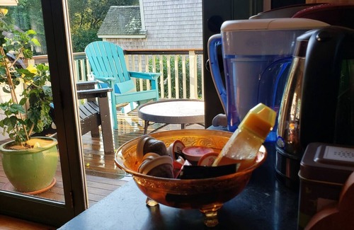 The beautifully renovated historic home offers exceptional private space for your vacation stay. Enter this federal style home to a mid century art gallery. The open sunny living and dining room boasts a mix of Cape and local art accenting a creative mix of contemporary and period furnishings.