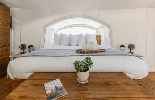 - Cozy Accommodations: Retreat to your glamping tent featuring premium bedding and memory foam beds that ensure restful nights before your special day.